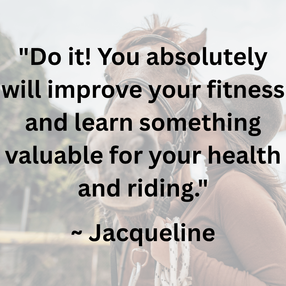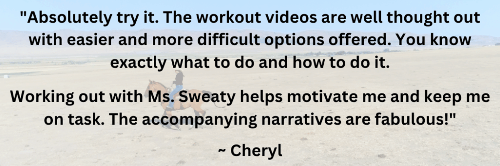 What about the horse part? Most people in the program and membership ride, and we talk about rider-specific fitness, but family and friends of horsewomen have found great success with The Sweaty Equestrian as well. You’re welcome to join us!