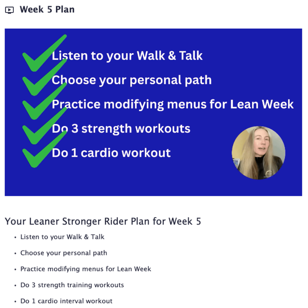 I’ll guide you through the program step-by-step, with manageable weekly checklists designed for busy riders. You’ll have a clear path to success without overwhelm.